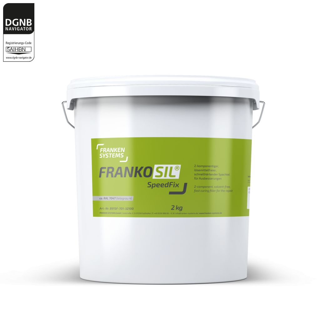 • Der FRANKOSIL® SpeedFix ist eine 2-komponentige Spachtel- und Modeliermasse. FRANKOSIL® SpeedFix wird zum Ausgleichen von Unebenheiten, zum flexiblen Verfüllen von Betonfugen und Schließen von Ausbrüchen im Untergrund eingesetzt.• Verbrauch: ca. 1,60 kg/m² pro mm Schichtdicke