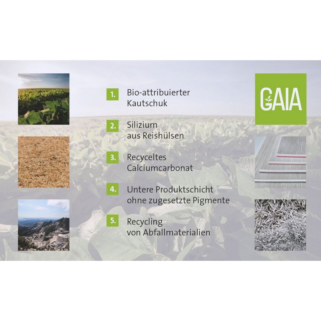 aufgebracht auf eine Rigid-Trägerschicht mit rückseitiger IXPE Trittschalldämmschicht und patentiertem 2G/5G Välinge System zur schwimmenden Verlegung.