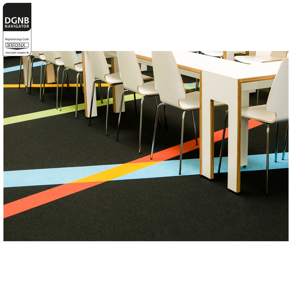 Die Kombination aus nachwachsenden Rohstoffen, Recyclingfasern und der Produktion in Deutschland machen FINETT DIMENSION zum zukunftsorientierten, weil nachhaltigen Nadelvlies-Bodenbelag.