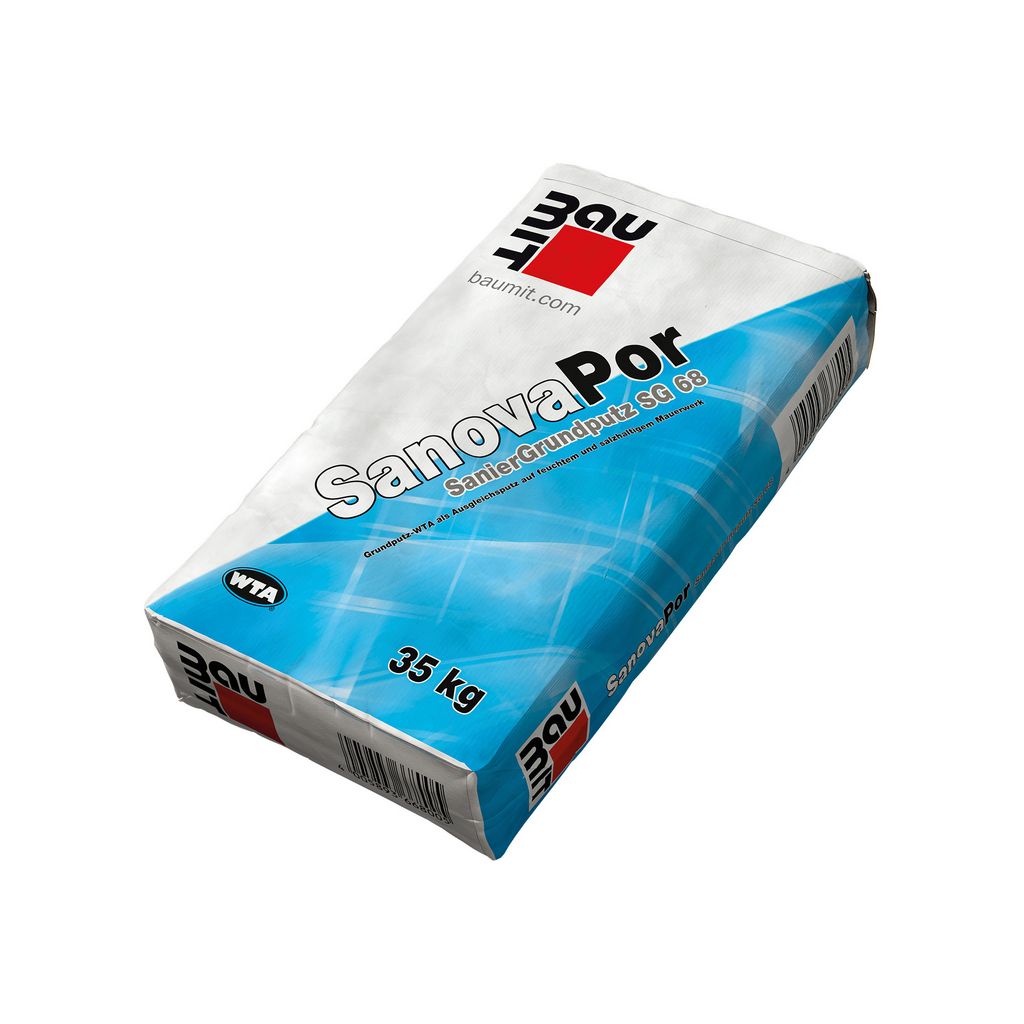 - Zertifizierter Grundputz-WTA als Ausgleichs- und Porengrundputz im Sanierputzsystem für die Sanierung von feuchte- und salzbelastetemMauerwerk.