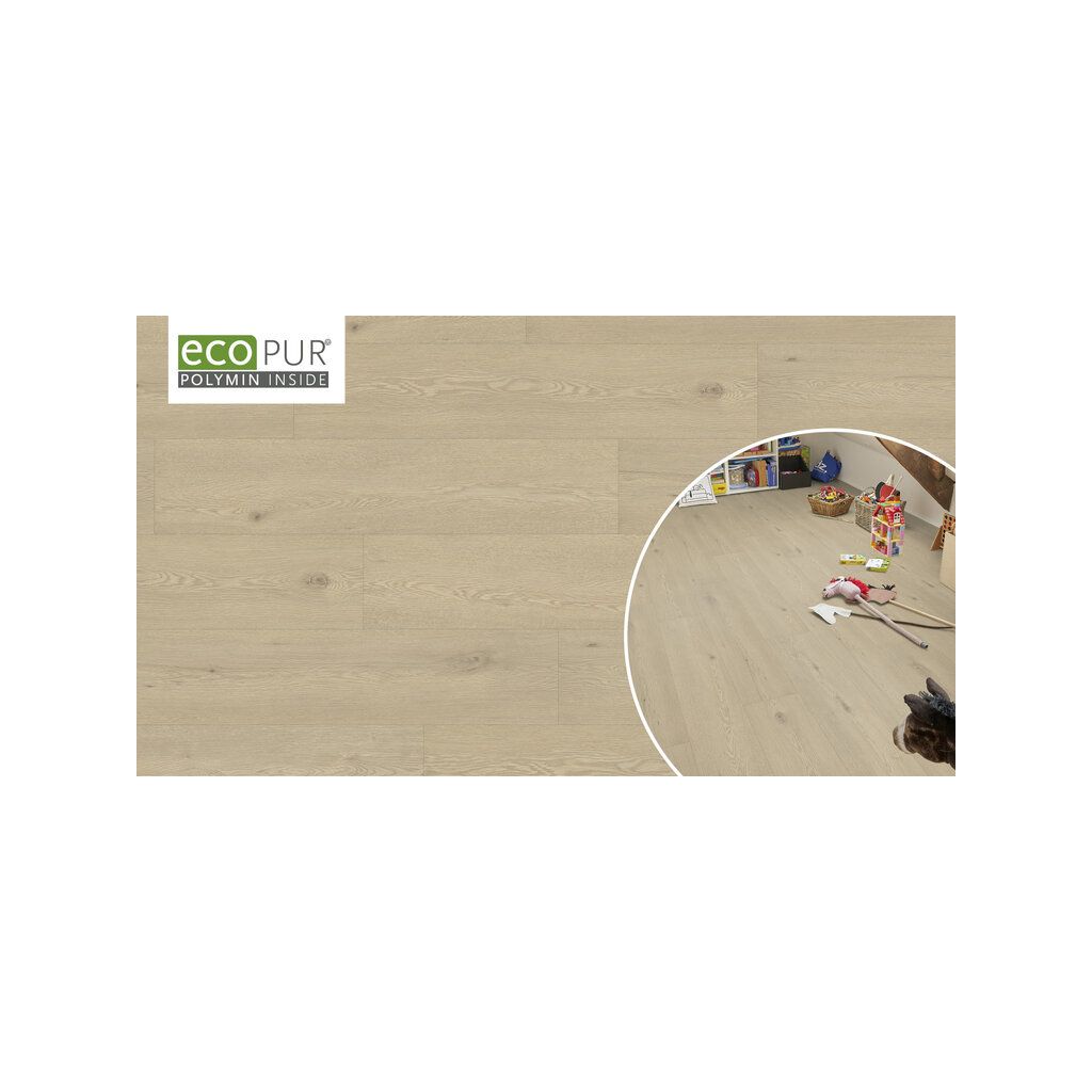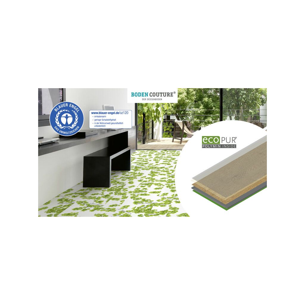Eco-Pur® – Natürlich. Innovativ. Zukunftsweisend.Mit Eco-Pur® entscheidest du dich für einen Boden, der Umweltbewusstsein und modernes Wohnen perfekt verbindet. Gefertigt aus dem innovativen Werkstoff Polymin®, ist er PVC-frei, weichmacherfrei und vollständig recyclebar – ein echtes Statement für nachhaltiges Bauen.
