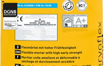 Zementgebundene, sehr emissionsarme, kunststoffvergütete Universalspachtelmasse mit guten Verlaufsei-genschaften zum Spachteln und Ausgleichen von verlegereifen Untergründen bis 10 mm Schichtdicke vor der Verlegung von elastischen und textilen…