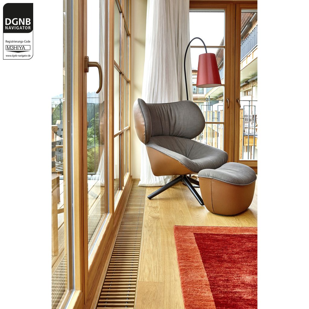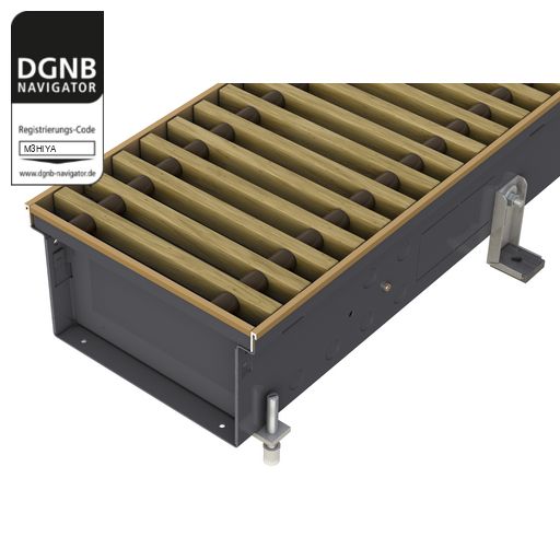 Trench units are mounted in the floor along floor-to-ceiling window surfaces. In combination with modern heating systems, effective and energy-saving heating of rooms can be achieved by the Katherm QK. The room air is drawn in by the fan, guided over the parallel convector and blown out into the room. The convector arranged on the window side ensures optimum cold air screening of the window, so that the heated air flows into the room without draughts. The Katherm QK is available in various duct widths, heights and lengths for heating the room as required. The unit has a convector, which consists of round copper pipes with aluminium fins and through which hot water flows. The EC cross-flow fan installed in the Katherm QK ensures that air flows evenly through the convector. The fan is controlled by a stepless speed control via an external 0-10 V signal. The units are also equipped with an electrotechnical control system to enable the units to be regulated according to the customer's requirements. The unit components are mounted in a floor trench, which is covered by a roll-up grille or a linear grille. This decorative cover of the trench unit is available in aluminium, brass, stainless steel and wood.The Katherm QK trench unit is used to heat rooms with large window areas. Exemplary areas of application for the unit are hotels, offices, sales and exhibition rooms.