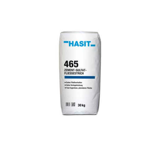 HASIT 465 Zement-Sulfat-Fließestrich Festigkeitsklasse CA/CT-C25-F5 nach DIN 18560 und DIN EN 13813 ist ein nahezu selbstnivellierender Fließestrich. Anwendbar als emissionsfreier Estrich auf Trennlage, auf Dämmung und für Fußbodenheizung im Innenbereich.Instructions for use