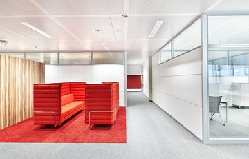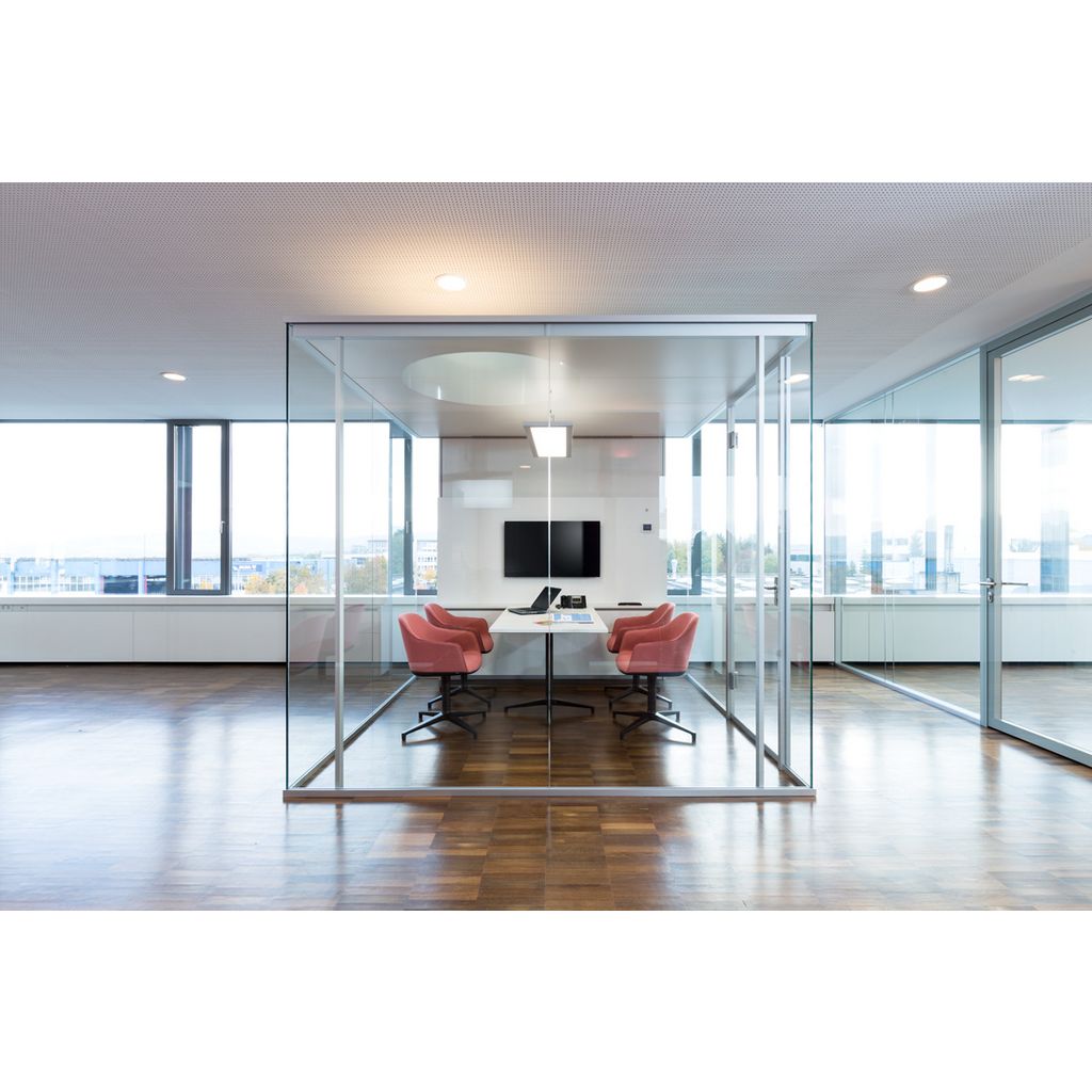 Das einschalige Ganzglassystem 3400 verbindet maximale Transparenz mit hoher Wirtschaftlichkeit. Die Basis bildet ein variables Boden- und Deckenprofil aus Aluminium, das unterschiedliche Verglasungen aufnehmen kann. Die Anschlussprofile zeichnen sich durch eine einfache Montage aus und stellen sicher, dass bauseitige Toleranzen aufgenommen werden können. Ergänzt wird das System durch verschiedene Zargen- und Türenkombinationen. Das Trennwandsystem 3400 bietet somit einen hohen Variantenreichtum bei gleichzeitiger formaler Reduktion auf das Wesentliche, da die Gläser ohne vertikale Pfosten miteinander verklebt werden. Es ist voll kompatibel mit anderen Wandsystemen von Strähle und eignet sich speziell für Flurbereiche, in denen hohe Transparenz gefordert wird. Den Grad der Transparenz und die Optik der Verglasungen können Planer durch den Einsatz von Folien und Bedruckungen frei gestalten. Zusätzlich kann das System 3400 auch als Ganzglas-Kubus realisiert werden. Es ist somit prädestiniert für Unternehmen, die ihre offene Unternehmenskultur auch in den Raumstrukturen widerspiegeln wollen.Documents