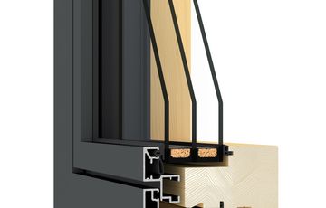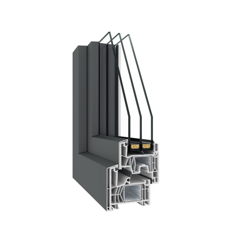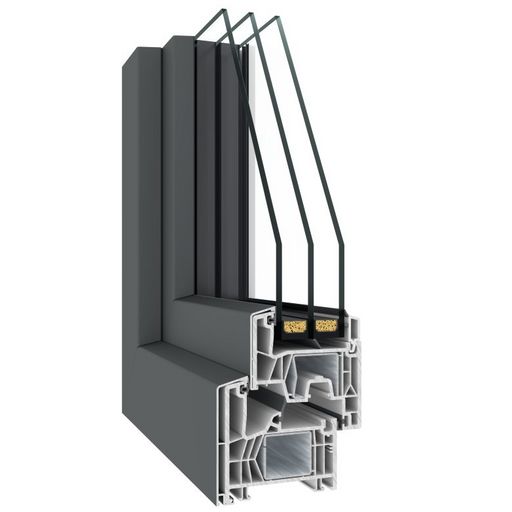 Kunststofffenster 88 TOP ALU 88 mm Bautiefe (mit Aluminium-Vorsatzschale) mit Dreifachverglasung mit Ug 0,5 W/m²K und Uw 0,74 W/m²K.