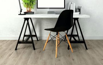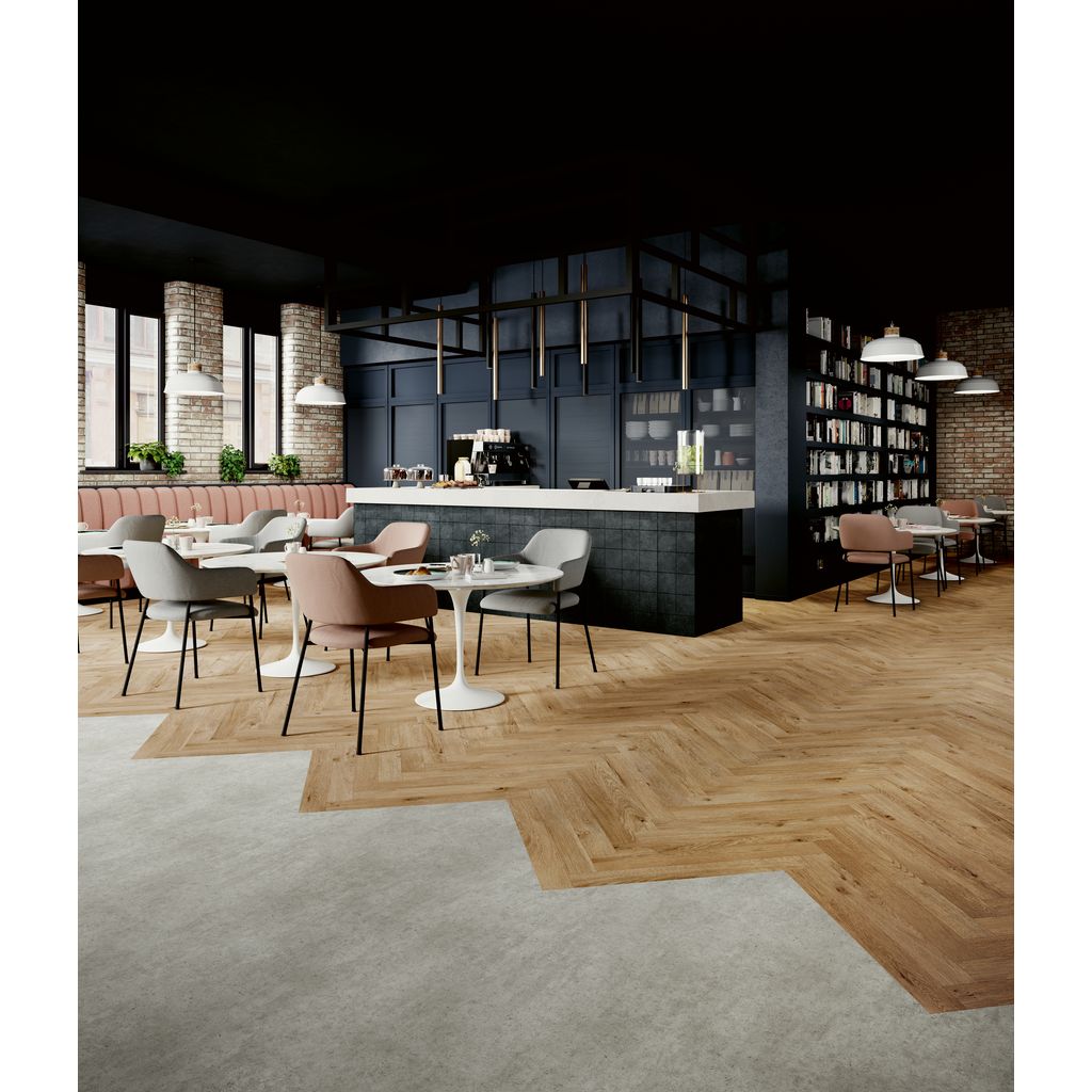 Heterogener PVC-Bodenbelag in Fliesen und Planken auf Basis einer fototechnischen Reproduktion mit transparenter Nutzschicht und werkseitig aufgebrachter Polyurethan-Vergütung für den Einsatz im strapaziertem Wohnbereich.