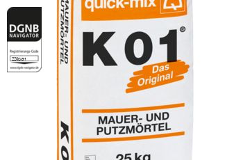 K 01 der Marke quick-mix wird zum Mauern, Putzen und Ausbessern verwendet. Anwendbar im Außen - und Innenbereich.