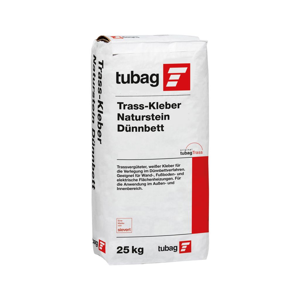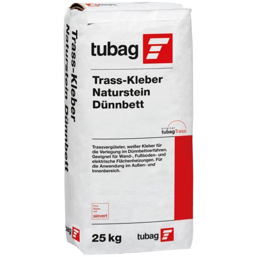 Weißer Trass-Kleber für Natursteinverlegung im Dünnbettverfahren zum Verlegen von verfärbungsempfindlichen Natursteinbelägen im DünnbettverfahrenContact the manufacturer