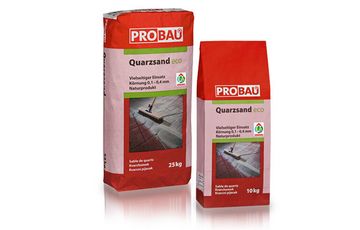PROBAU Quarzsand eco ist ein feuergetrockneter Feinsand der Körnung 0,1–0,4 mm, der sich für den Einsatz im Innen- und Außenbereich eignet: