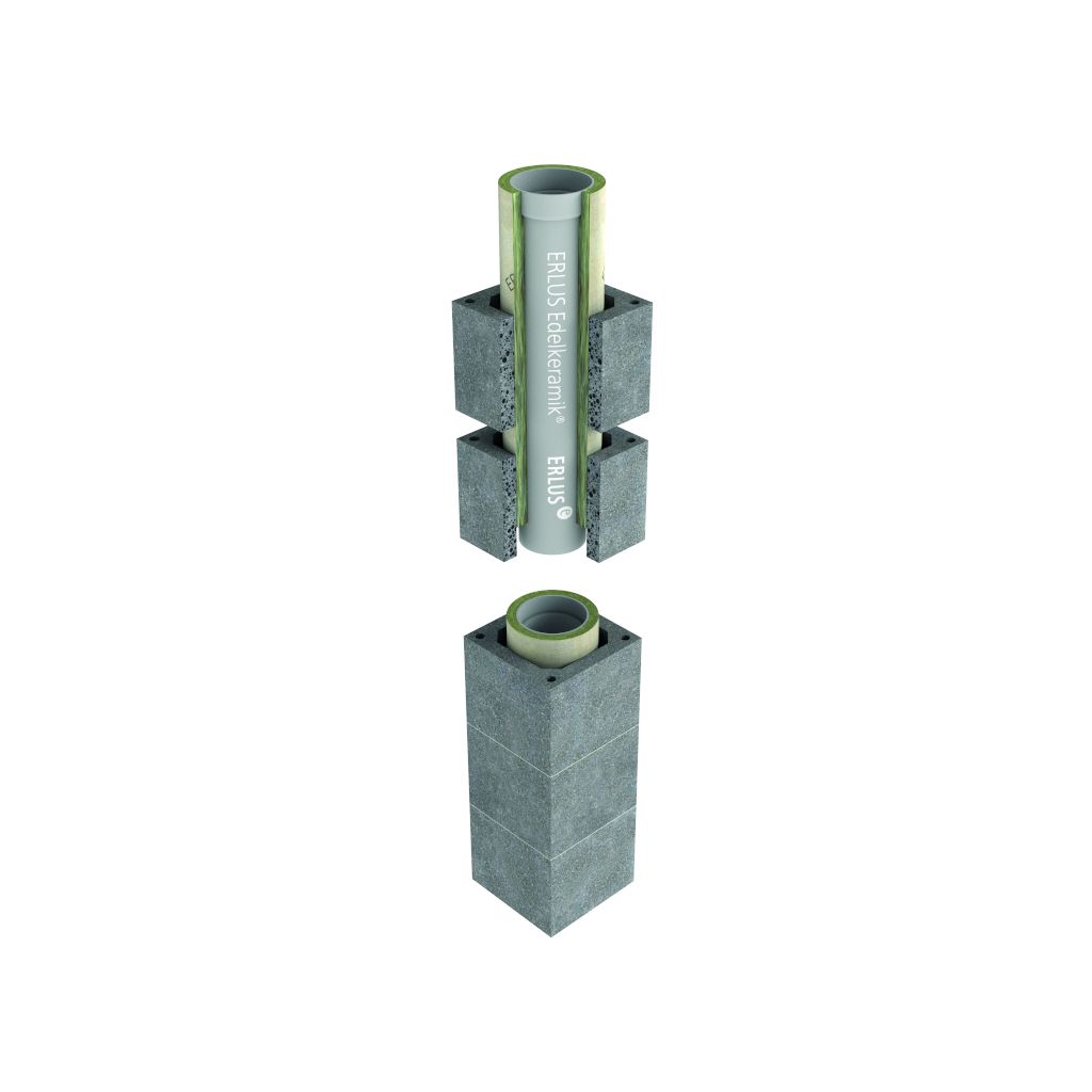 Feuchteunempfindlicher, dreischaliger Isolierschornstein für alle Brennstoffe (W3G). Der besondere Vorteil des ERLUS Leistungsschornsteins CI liegt in den auf der Baustelle sicher und schnell montierbaren Bausatzomponenten. Die abgasführende Rauchrohrsäule besteht aus dem durchglasierten ERLUS Edelkeramik®-Muffenrohr, mit einer 6 cm hohen Muffe. Die Edelkeramik-Muffenrohre sind zur schnelleren und sicheren Verarbeitbarkeit bereits ab Werk gedämmt und kaschiert und können so passgenau in die Mantelsteine hineingesteckt werden. Die Leichtbetonmantelsteine sind plangeschliffen und werden nur noch mit Klebemörtel versetzt. Das System ist bis zu einem Durchmesser von 25 cm verfügbar.Contact the manufacturer