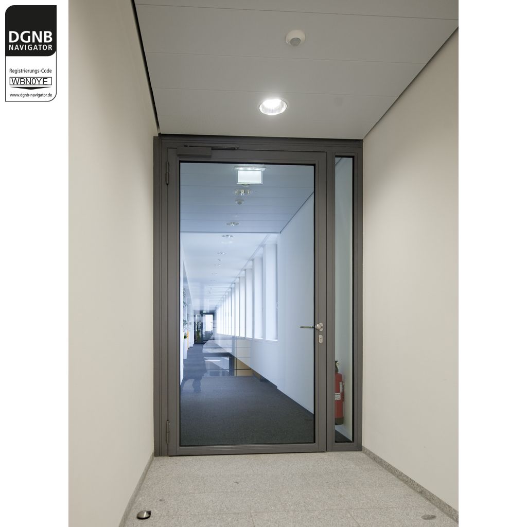 Innen- und Rauchschutztüren (A/RS) bestehen entweder aus nicht wärmegedämmten Aluminiumprofilen oder wärmegedämmten Aluminium-Kunststoff-Verbundprofilen, die im Eckbereich über Press-Klebeverbindung oder Verschraubung verbunden sind. Die Aluminiumprofile sind entweder über Einbrennpulverlackierung beschichtet oder eloxiert. Der Flügelrahmen enthält als Ausfachung entweder Glas oder ein Paneel. Die Ausfachung kann durch Sprossen in Teilflächen unterteilt sein und wird durch Aluminium-Glasleisten gehalten. Die Sprossen sind durch Schraubverbindungen fixiert. Die Zarge (Rahmen) besteht aus Stahlumfassungszarge ausgeführt. Der Rauchschutzabschluss muss mit zugelassenen Zubehörbauteilen ausgestattet werden. Als Zubehörbauteil werden zugelassene Bauprodukte, wie Konstruktionsbänder, Türschließer, Schließfolgeregler, Schlösser und Türdrückergarnituren, eingesetzt.Instructions for use
