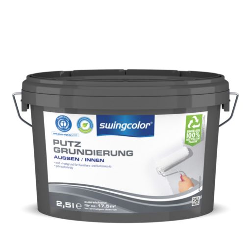 Die swingcolor® PUTZ-GRUNDIERUNG ist ein weißer Haftgrund, der als Dispersionsgrundierung zur Vorbehandlung von Untergründen wie beispielsweise Beton, Putz, Gipskarton oder intakten Dispersionsanstrichen für den nachfolgenden Auftrag von Kunstharz- oder Buntsteinputzen dient. Dabei reduziert swingcolor® PUTZ-GRUNDIERUNG die Saugfähigkeit des Untergrunds und schafft somit eine optimale Haftung und Griffigkeit. Sie ist gebrauchsfähig, leicht zu verarbeiten und kann sowohl im Innen- als auch im Außenbereich verwendet werden.Contact the manufacturer