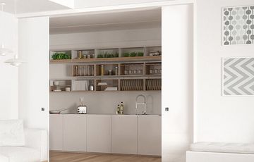 Protektor Passagio liefert mit hochwertigen beschichteten Schiebetürelementen das perfekte Trockenbausortiment für Schiebetüren, Doppelschiebetüren, Glasschiebetüren und Sonderhöhen. Großzügige Durchgänge und Türen mit hoher dynamischer Belastung…
