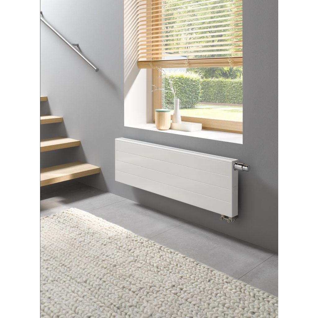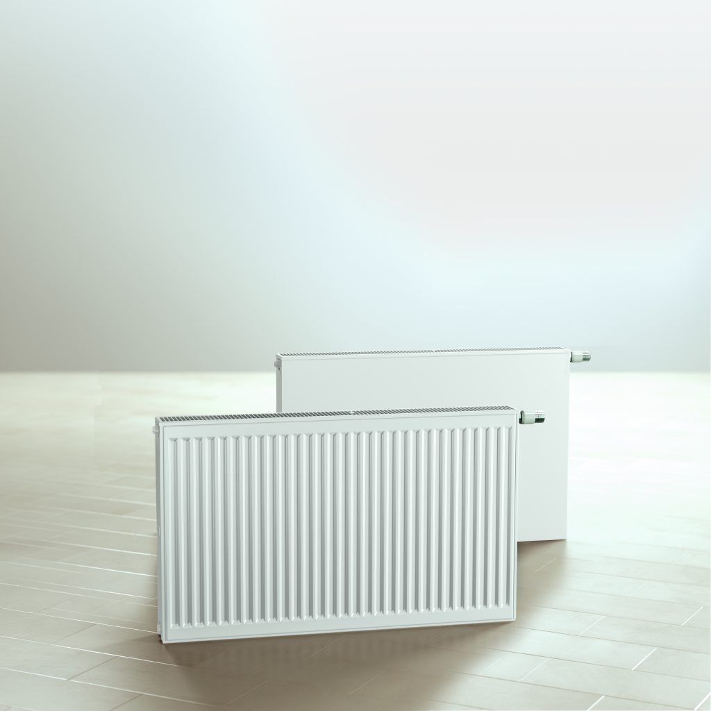 Wie viel Wärme ein Flachheizkörper abgibt, hängt von der Temperatureinstellung der Thermostate ab und wieviel Wasser somit durch ihn hindurchfließt.
