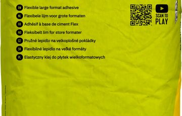 Der hoch standfeste, flexible Dünnbettmörtel codex Power RX 4 Ultra eignet sich besonders für die Verlegung von schweren Großformatfliesen ohne einzusinken.