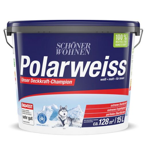 SCHÖNER WOHNEN Polarweiss ist unser Deckkraft-Champion und eine echte Profi-Innendispersionsfarbe. Die Rezeptur mit Spritzfrei-Formel ermöglicht ein Streichen ohne oder nur mit wenigen Farbspritzern und erleichtert damit Ihre Renovierung. Polarweiss ist lösemittel- und weichmacherfrei, sehr strapazierfähig, wasserdampfdurchlässig und geruchsarm. Sie enthält keine Konservierungsmittel und ist auch für Allergiker geeignet. Polarweiss hat einen hohen Weißgrad, ist leicht zu verarbeiten und hat eine sehr hohe Ergiebigkeit. Die herausragenden Eigenschaften sorgen für ein exzellentes Ergebnis und perfekte Oberflächen meist schon nach einem Anstrich. Polarweiss – die optimale Dispersionsfarbe für alle Neu- und Renovierungsanstriche auf z. B. Raufaser- und Prägetapeten, alten Dispersionsfarbenanstrichen, Gipskartonplatten sowie Mauerwerk, Putz und Beton.Contact the manufacturer