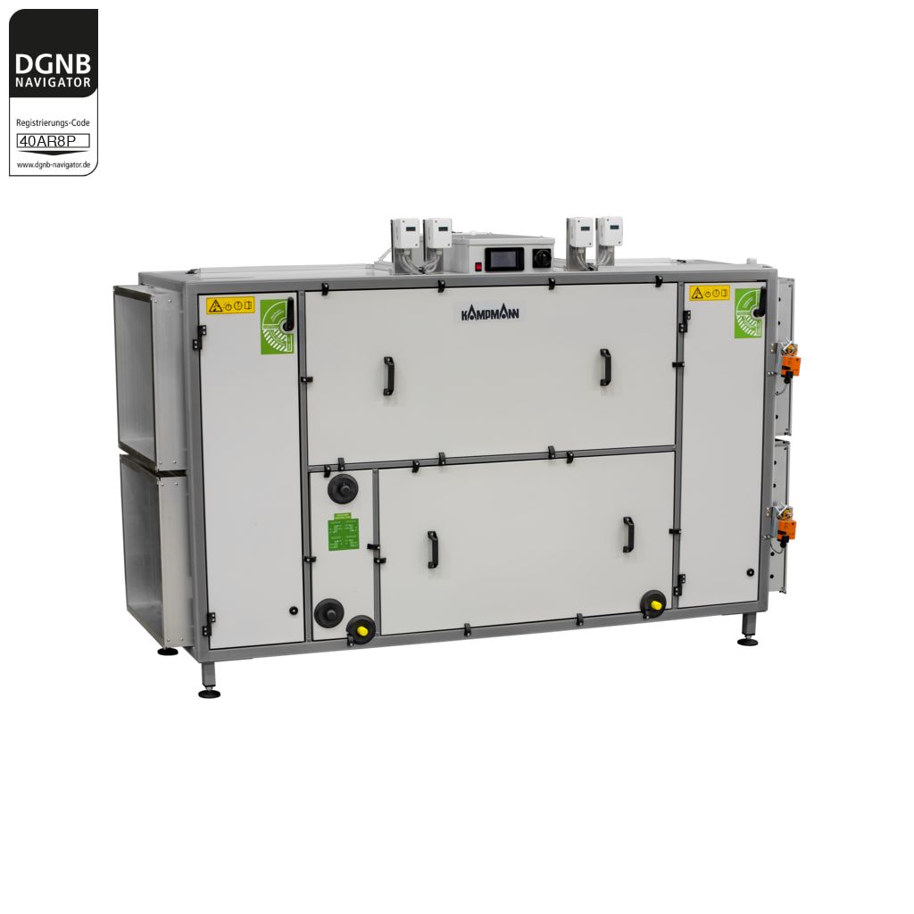 The units are only designed for ventilation with heat recovery and heating or cooling of the air for installation in frost-free and dry interior spaces. Within the room to be heated, the unit needs to be connected to the building's heating/cooling/ventilation system and to the building's sewage system and power grid. Any sound-absorbing measures and insulation of the air ducts must be put in place (on site). The connection to the air duct is sound-decoupled by the insulating spigots fitted. It is decoupled from the floor by the unit feet. The units cannot be divided. The operating limits and limits of use described in the installation instructions must be observed.Reference to the DGNB system