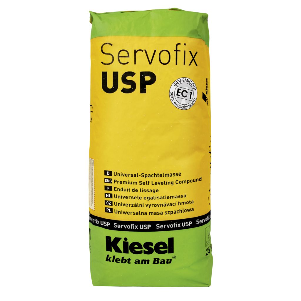 Servofix USP mit sauberem Wasser mittels eines elektrischen Rührgeräts bei max. 600 U/min klumpenfrei anrühren. Nach ca. 5 Min. Reifezeit nochmals umrühren. Anschließend die Spachtelmasse mit Glättkelle oder Rakel auftragen. Bei stark unterschiedlichen Schichtdicken sowie auf Gussasphalt die Spachtelmasse mit 1 kg Okamul 71 je 25 kg Pulver vergüten und die Wasserzugabe um die entsprechende Menge reduzieren.Nachspachtelungen sind ggf. nass in nass sofort nach Begehbarkeit durchzuführen, ansonsten erneut mit Okamul HD 11 oder Okatmos® EG 20 in der Verdünnung 1:3 mit Wasser grundieren. Während der Trocknung direkte Sonneneinstrahlung und Zugluft vermeiden.