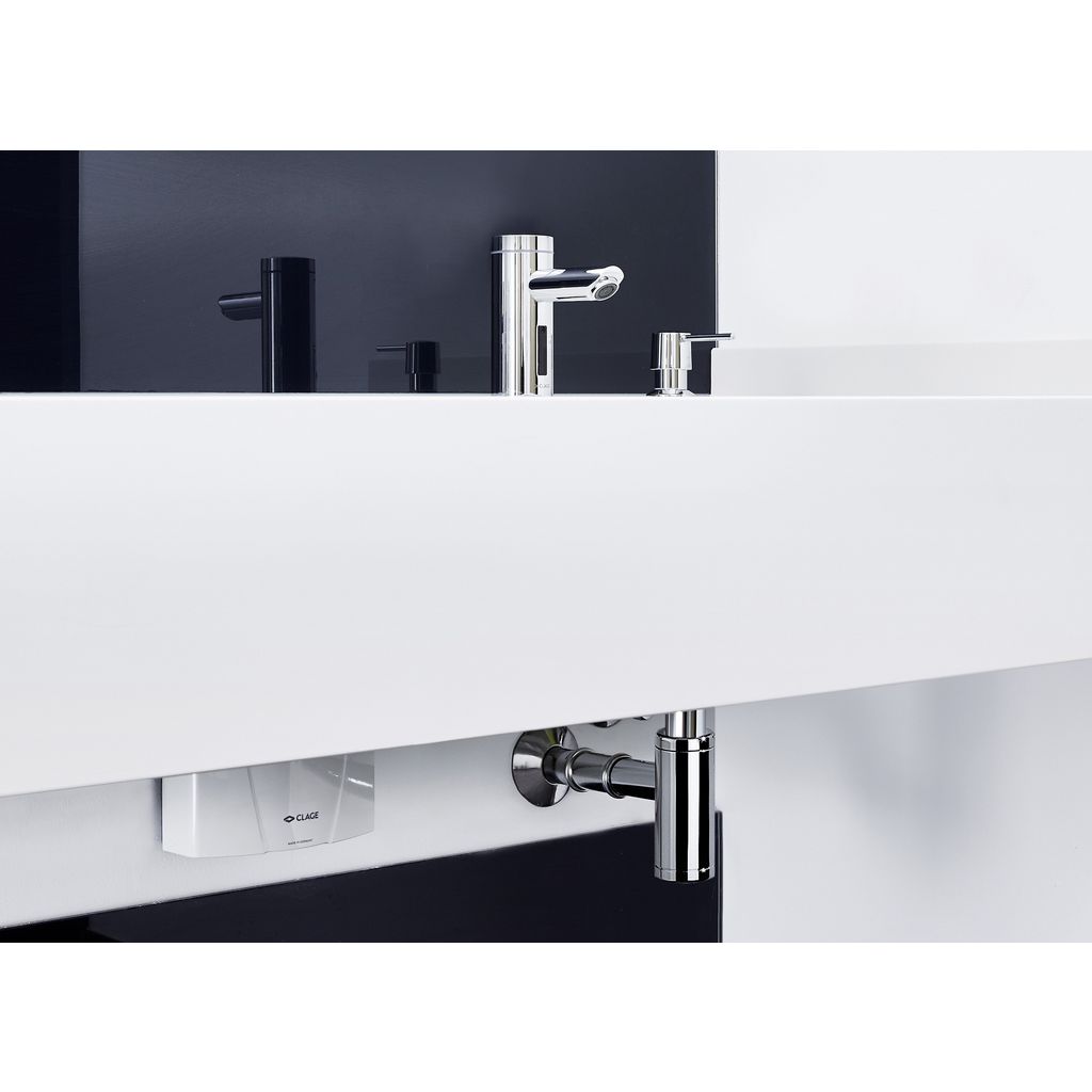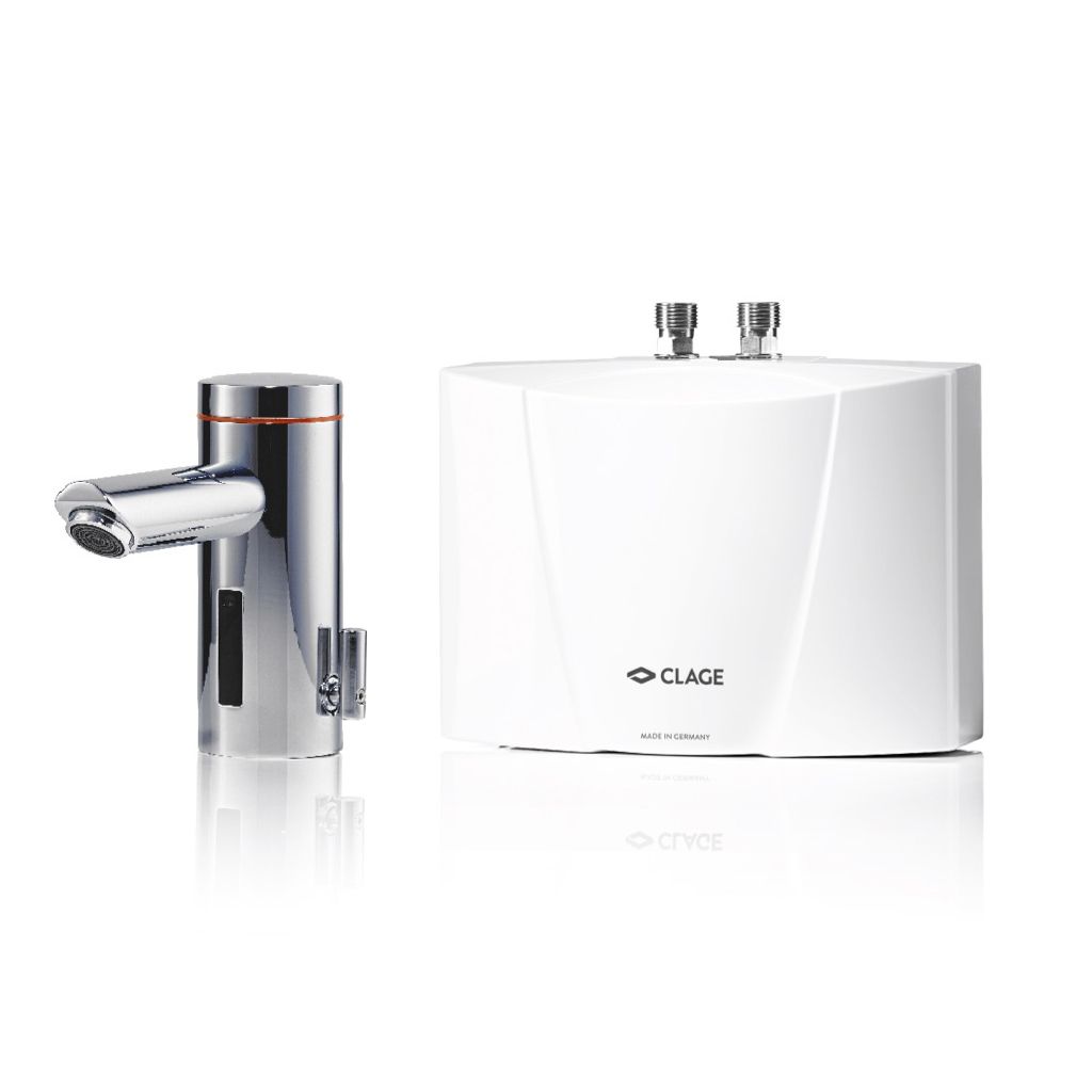 Elektronisch geregelter Durchlauferhitzer (Untertischgerät) im Miniformat mit Sensorarmatur für hygienisches energieeffizientes Händewaschen