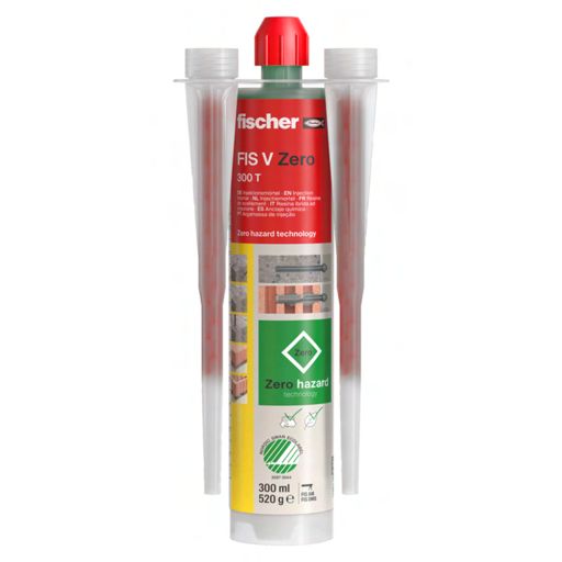 Der fischer Universalmörtel FIS V Zero, basierend auf einer innovativen und speziellen Rezeptur, bietet maximale Sicherheit für Mensch und Natur. Der Injektionsmörtel erfüllt höchste Arbeitsschutzanforderungen und ist gemäß der CLP-Verordnung als "kennzeichnungsfrei" eingestuft. FIS V Zero ist zugelassen für Befestigungen in gerissenem und ungerissenem Beton, Mauerwerk sowie für nachträgliche Bewehrungsanschlüsse. Auch Spezialanwendungen, wie Verankerungen in wassergefüllten Bohrlöchern, sowie die Installation bei Temperaturen von -10 bis 40°C, sind in der Zulassung geregelt und bieten höchste Flexibilität unter jeglichen Wettereinflüssen. Die recycelte Kartusche mit 50% PCR-Anteil sowie das Etikett mit recyceltem Papier tragen einen wichtigen Teil zur Reduzierung der Rohstoffverschwendung bei und fördern somit die Kreislaufwirtschaft.Der fischer Injektionsmörtel FIS VS ist ein 2K-Injektionsmörtel auf Vinylester-Hybrid-Basis mit verlängerter Aushärtezeit. Dies verhindert auch bei bei sommerlichen Temperaturen das vorzeitige Aushärten, wodurch der Injektionsmörtel optimal für große Bohrlochtiefen geeignet ist. Der FIS VS ist in einer Vielzahl von Systemen zugelassen und bietet damit garantierte Sicherheit für nahezu jedem Anwendungsfall. Ein umfangreiches, abgestimmtes Zubehörsortiment steigert die große Flexibilität des FIS VS. Die Injektionskartuschen können mit den fischer Auspressgeräten kraftschonend und schnell verarbeitet werden. Angebrochene Kartuschen können durch Statikmischerwechsel wiederverwendet werden.