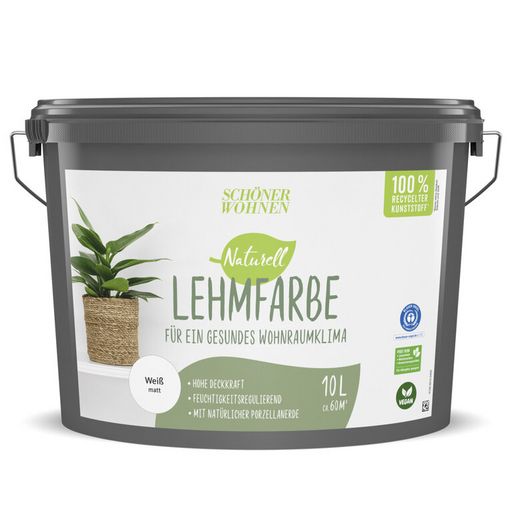 SCHÖNER WOHNEN Naturell Lehmfarbe ist eine hoch deckende Dispersions-Silikat-Wandfarbe mit einem hohen Lehmanteil, die aufgrund ihrer speziellen Rezeptur aus kontrollierten Rohstoffen auf Konservierungsmittel verzichten kann. Mit mineralischen Untergründen verbindet sie sich durch Verkieselung und schafft durch ihre besonders hohe Wasserdampfdiffusionsfähigkeit (Atmungsaktivität) ein angenehmes Wohnraumklima. Frei von gesundheitsschädlichen Emissionen sowie Weichmachern und Lösemitteln. SCHÖNER WOHNEN Naturell Lehmfarbe entspricht der Nassabriebbeständigkeit Klasse 3 nach EN 13300 und ist besonders leicht zu verarbeiten. SCHÖNER WOHNEN Naturell Lehmfarbe – die richtige Wahl auf SCHÖNER WOHNEN Naturell Streich-Lehmputz, aber auch auf Raufasertapeten, alten, matten Dispersionsfarbenanstrichen, Kunstharzputzen sowie Mauerwerk, Putz und Beton.Documents