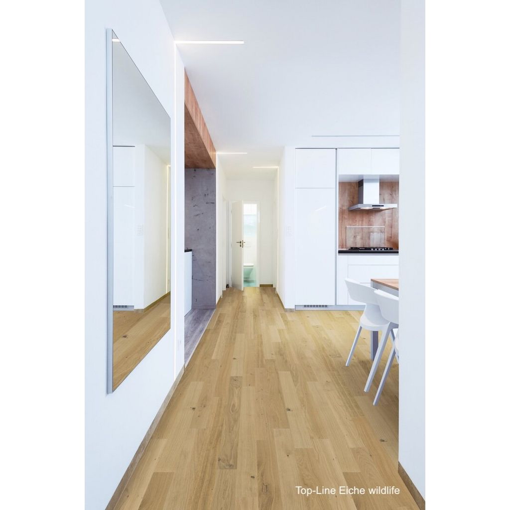 Zweischichtparkett aus einer edlen, massiven Nutzschicht aus hochwertigem Echtholz und einer stabilen Trägerschicht aus querverleimtem Holz. Diese Aufbauweise sorgt für hohe Formstabilität und macht das Parkett ideal für den Einsatz auf Fußbodenheizungen. Durch seine geringe Aufbauhöhe eignet es sich hervorragend für Renovierungen. Mit einer großen Auswahl an Holzarten, Oberflächen und Sortierungen bietet es vielfältige Gestaltungsmöglichkeiten – nachhaltig produziert, langlebig und mit natürlichem Charme.Documents