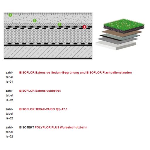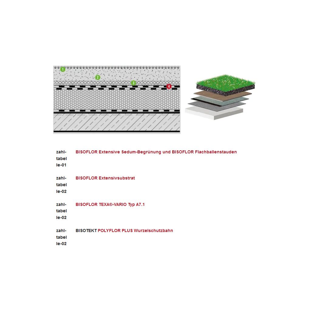 BSIOFLOR KOMPLETT-PALETTE für 10 m² Dachbegrünung ab wurzelfester Abdichtung bestehend aus:- BISOFLOR SPEICHERMATTE TYP A7.1 Schutz- Speicher- und Filtermatte 12,50 m²