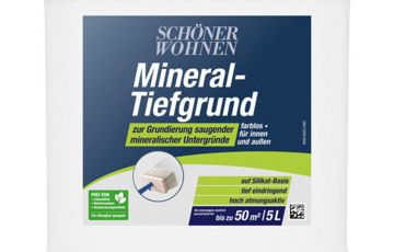 SCHÖNER WOHNEN Mineral-Tiefgrund ist eine leicht zu verarbeitendes, konservierungsmittelfreies Grundierkonzentrat für nachfolgende Mineral- und Silikatfarbenanstriche auf allen mineralischen Untergründen, z. B. Kalk-, Zement-und Silikatputz,…