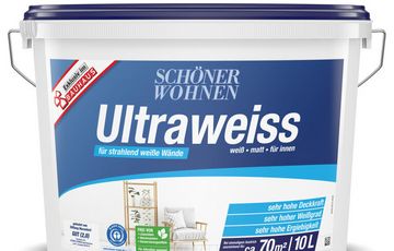 SCHÖNER WOHNEN Ultraweiss ist eine lösemittel- und weichmacherfreie, waschbeständige Dispersionsfarbe die keine Konservierungsmittel enthält und auch für Allergiker geeignet ist. Geeignet für wasserdampfdurchlässige Neu- und Renovierungsanstriche…