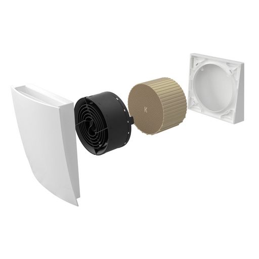Kermi® x-well® D13 Pendellüfter mit Wärmerückgewinnung. Durch die alternierdende Betriebsweise eines Lüfters, der Wechsel der Drehrichtung des Ventilators wird der Keramikstein durchströmt. Im Abluftbetrieb wird warme und feuchte Luft aus den Räumen nach außen befördert, die Wärmeenergie nimmt dabei der Keramikstein auf. Nach dem Wechsel in den Zuluftbetrieb gelangt frische Luft in die Räume, dabei nimmt die Luft die gespeicherte Wärmeenergie des Keramikstein auf.Energieeffizenzklasse nach EU 1254/2015: A / A+ mit optionaler Sensorik
