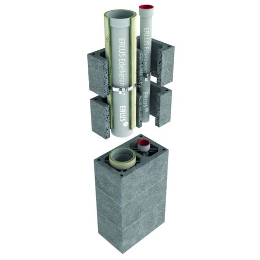 Besondere Vorteile: Der geringe Rohrquerschnitt ermöglicht eine platzsparende Bauweise. Es können alle marktüblichen Gas- und Öl-Brennwertgeräte angeschlossen werden. Die Edelkeramikrohre mit Ihrer passgenauen Muffe (Muffenhöhe 6 cm) werden mit der ERLUS Elastomerdichtung (Ø 8 - 14 cm) durch einfaches Ineinanderstecken schnell und sicher verbunden und durch Abstandhalter mittig im Schacht fixiert, was eine störungsfreie Funktion und schnellen Baufortschritt gewährleistet.