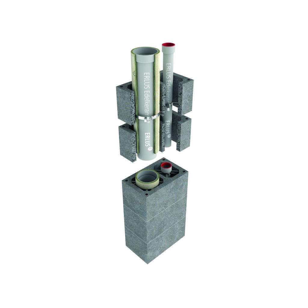 Zweischalige, keramische Überdruckabgasleitung, feuchteunempfindich, für den Gleich- und Gegenstrombetrieb im L90-Leichtbetonschacht, als Bausatz für die Montage vor Ort. Speziell geeignet für die sehr niedrigen Abgastemperaturen von Gas- oder Öl-Brennwertgeräten. Diese erfordern, dass die Abgase mit einem ein gebauten Abgasgebläse im Überdruck in die Abgasleitung transportiert werden. Um eine sichere Abführung der Abgase zu gewährleisten, soll der Überdruck bis zur Mündung der Abgasleitung fortgesetzt werden. Für moderne Brennwertfeuerstätten ist daher eine ERLUS Edelkeramik® Überdruckabgasleitung empfehlenswert, denn diese wurde speziell für diesen Einsatzbereich entwickelt. Der Schornsteinkopf ist dabei so ausgebildet, dass sich keine Abgase mit dem Frischluftstrom vermischen können. Es können alle marktüblichen Gas- und Öl-Brennwertgeräte angeschlossen werden.