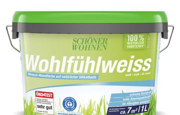 SCHÖNER WOHNEN Wohlfühlweiss ist eine hochdeckende Mineral-Wandfarbe, die aufgrund ihrer speziellen Rezeptur aus kontrollierten Rohstoffen auf Konservierungsmittel verzichten kann. Mit mineralischen Untergründen verbindet sie sich durch Verkieselung…