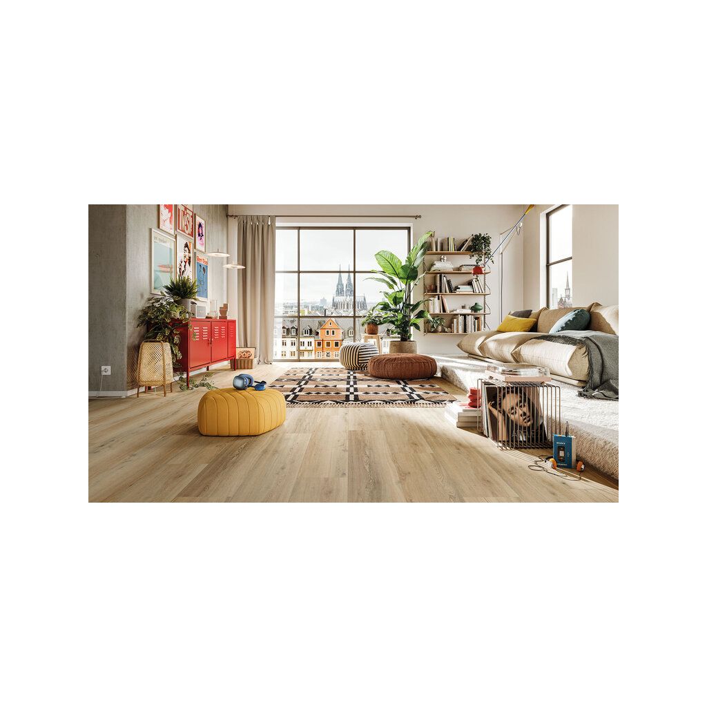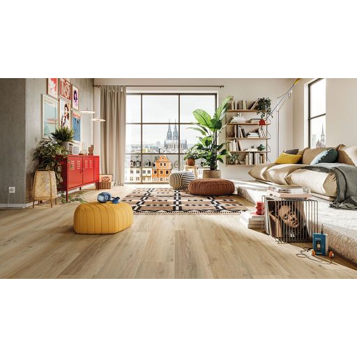 Das Dryback-Vinyl DD 155 ist die Kurzdiele zur vollflächigen Verklebung. Die durchgehende Holzporenstruktur verleiht eine harmonische und lebendige Optik. Mit seiner überzeugenden Profiqualität ist DD 155 der perfekte Bodenbelag für ebene und aufbereitete Untergründe – im Neubau, bei Renovierungen oder in Objektbereichen wie Ladenlokalen und Restaurants. Der Boden ist wasserfest, feuchtraumgeeignet und gewährleistet eine optimale Wärmeleitung auf Fußbodenheizungen.