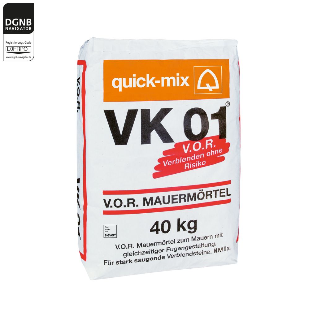 V.O.R. Mauermörtel für stark saugende Verblendsteine. Zum vollfugigen Mauern mit abschließendem Fugenglattstrich von schlagregensicherem Sicht- und Verblendmauerwerk mit einer Druckfestigkeit > 5 N/mm²Contact the manufacturer