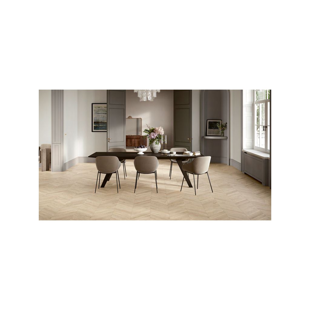 Trendtime 3 im angesagten Fischgrätmuster mit synchroner Oberflächenstruktur ist dank Allround-Click System einfach und schnell zu verlegen, da keine linken und rechten Stäbe erforderlich sind. Die spezielle Aqua-Proof Trägerplatte mit Rundum-Kantenimprägnierung sorgt für besonders effizienten Feuchtigkeitsschutz. Somit ist dieser Laminatboden auch für Feuchträume geeignet mit bis zu einer Stunde Schutz bei stehendem Wasser. Mikrokratzfestigkeit und Antistatik sind weitere Eigenschaften. Trendtime 3 ist auch für Fußbodenheizung geeignet. Die lebenslange Garantie sorgt für beste Qualität (lt. Parador-Garantiebestimmungen).