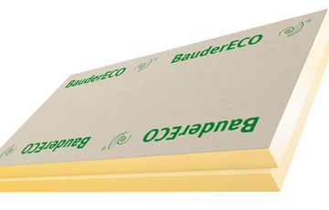 BauderECO F ist eine Hartschaumdämmplatte aus biomassenbilanziertem Polyurethan zur Wärmedämmung von Flachdächern. Die Platten bestehen aus einem biomassebilanzierten Dämmkern, recycelten Rohstoffen und einer beidseitigen Deckschicht aus Muschelkalk.