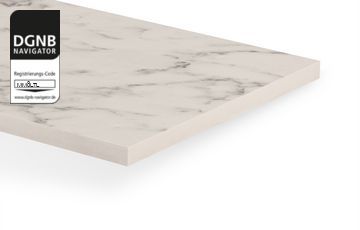 Mit homogen grau gefärbtem Kern und beidseitig dekorativer Melaminharzoberfläche.