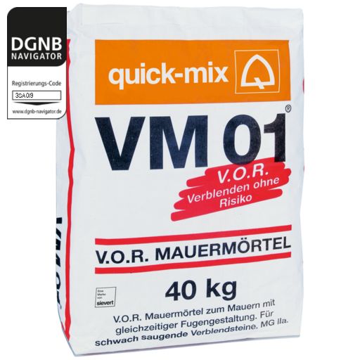 V.O.R. Mauermörtel für schwach saugende Verblendsteine. Zum vollfugigen Mauern mit abschließendem Fugenglattstrich von schlagregensicherem Sicht- und Verblendmauerwerk. Druckfestigkeit > 5 N/mm².