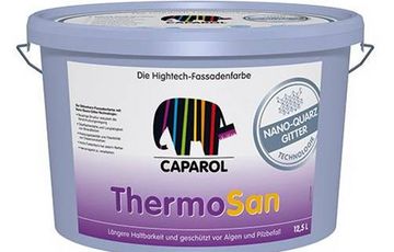 Hochwertige Fassadenfarbe mit Nano-Quarz-Gitter Struktur für saubere Fassaden. ThermoSan ist gegen Algen- und Pilzbefall geschützt.