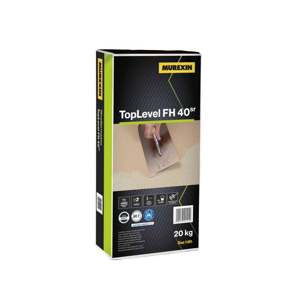 TopLevel FH 40ˢʳ ist eine hoch staubreduzierte, hybridgebundene, kunststoffvergütete, sehr gut verlaufende, nivellierende Fließmasse für den Innenbereich, zur Herstellung planebener Unterböden, in Schichtdicken von 1 bis 15 mm. Zur Aufnahme von Bodenbelägen aller Art, z. B. Parkett, LVT, keramische Fliesen usw. Geeignet bei Fußbodenheizung und Stuhlrollenbelastung (Stuhlrolleneignung ab 1 mm Schichtstärke).Instructions for use