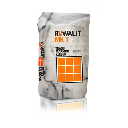 Der Rywalit® MK T ist ein heller, flexibler, trasshaltiger Klebemörtel, geeignet zum verfärbungsfreien Verkleben von Natursteinplatten wie z.B. Marmor, Kalksteinplatten, Granit, Quarzit u.ä. Zum Verkleben von verformungsunempfindlichen Natur- und Kunststeinplatten. Ideal zumToleranzausgleich bei unterschiedlichen Plattenstärken, geeignet für Schichtstärken von 3 mm - 12 mm.