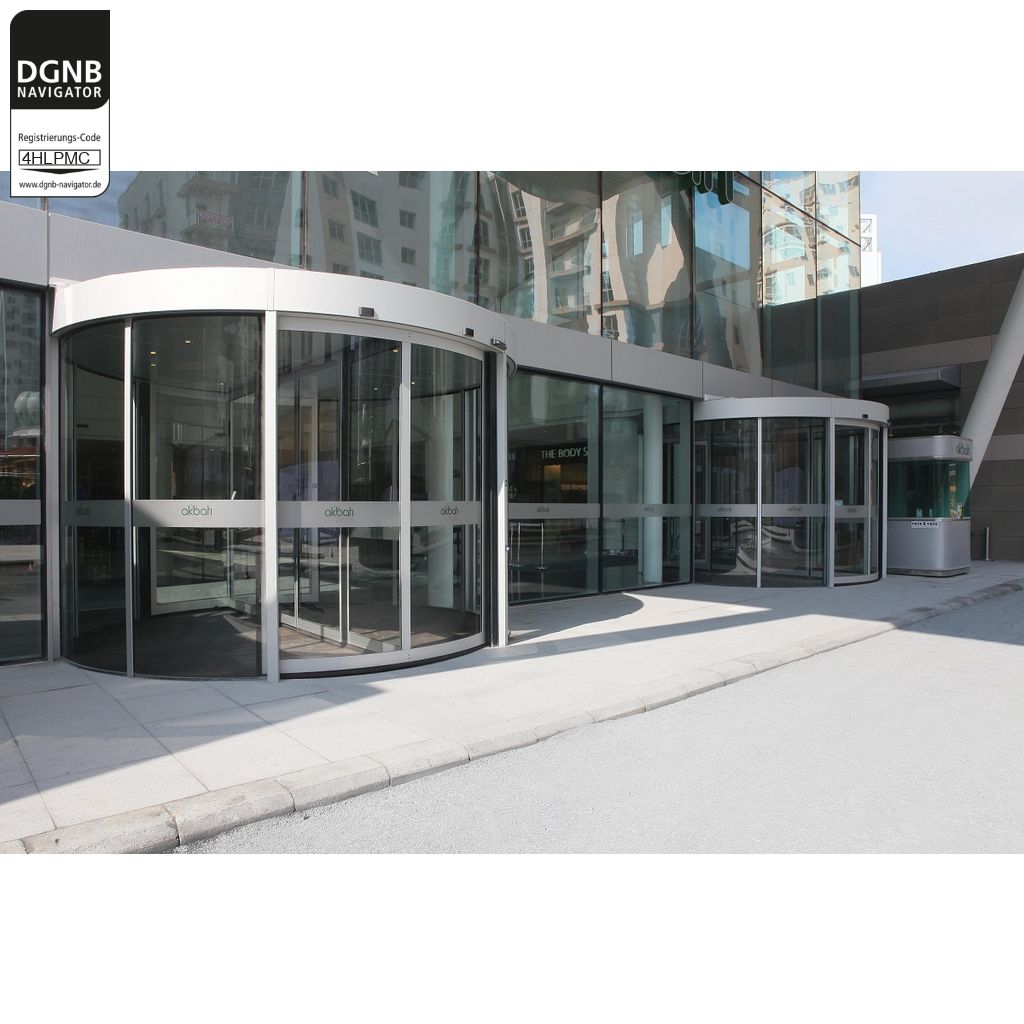Automatische Karusselltüren können verwendet werden, um einen komfortablen Ein- und Ausgang in vielen Anwendungen in derFassade von oder innerhalb eines Gebäudes zu ermöglichen.