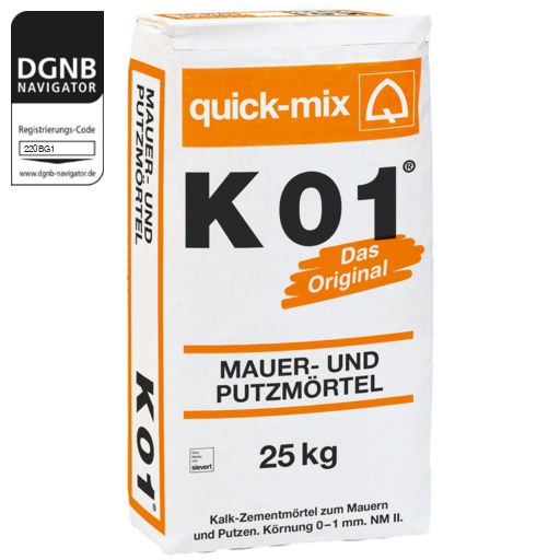 K 01 der Marke quick-mix wird zum Mauern, Putzen und Ausbessern verwendet. Anwendbar im Außen - und Innenbereich.Contact the manufacturer