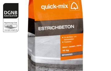 EB 10 kg Estrichbeton der Marke quick-mix ist zur Herstellung von feingliedrigen Betonbauteilen und Fundamenten, sowie zur Herstellung von Estrichkonstruktionen geeignet. Er ist mit dem EC 1 plus Siegel ausgezeichnet.