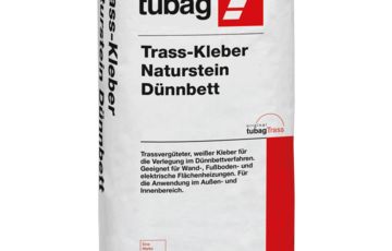 Weißer Trass-Kleber für Natursteinverlegung im Dünnbettverfahren zum Verlegen von verfärbungsempfindlichen Natursteinbelägen im Dünnbettverfahren