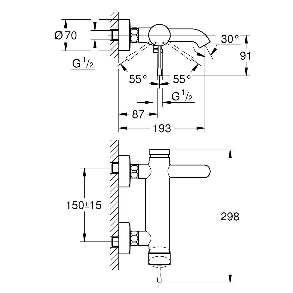 GROHE Essence Einhand-WannenbatterieDN 15, Wandmontage
