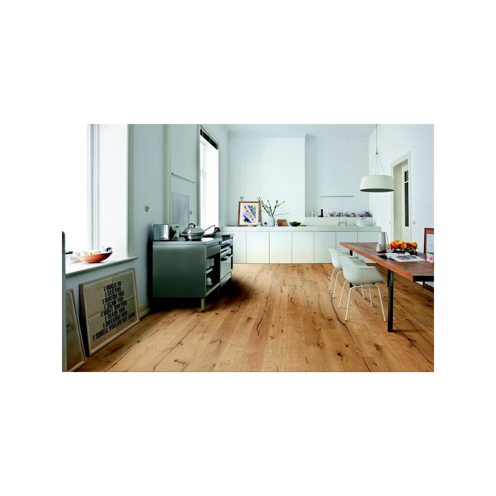 Dreischichtaufbau mit ca. 2,5mm Edelholznutzschicht, Fichtestabmittellage und Gegenzugfurnier aus NadelholzDer Schiffsboden Eiche pure strukturiert ist ein qualitativ hochwertiger Markenboden für die einfache, schwimmende Verlegung in Wohnräumen mit einem sehr guten Preis-/Leistungsverhältnis. Die einzigartige Holzoptik fügt sich in jedes Ambiente ein und sorgt für einen tollen Auftritt.