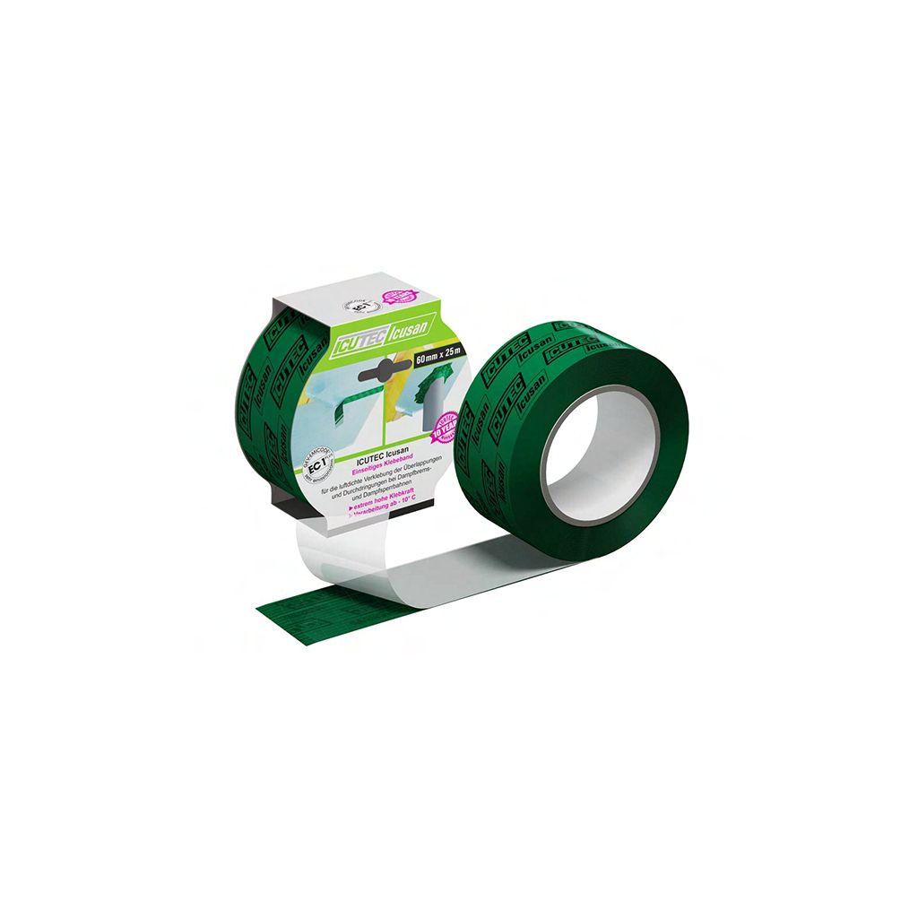 Das Klebeband ICUTEC Icusan wird eingesetzt für den Bereich der luftdichten Verklebung von Dampfbremsfolien an Durchdringungen als auch Überlappungen. Durch den Einsatz eines lösemittelfreien modifizierten Acrylatdispersion sind Verklebungen bis -10° C möglich. Bei korrekter Verwendung des Klebebandes ICUTEC Icusan wird die Dampfbremsfunktion auch im Anschluss an Durchdringungen hergestellt.Contact the manufacturer